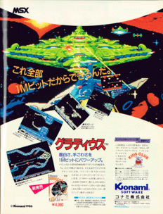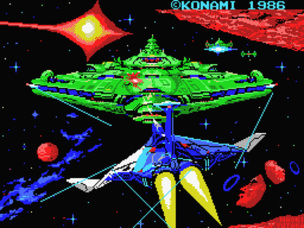 概要: 美しき惑星グラディウスを、亜時空星団バクテリアンの侵略から守るために超時空戦闘機ビックバイパーを操作して戦うゲームです。